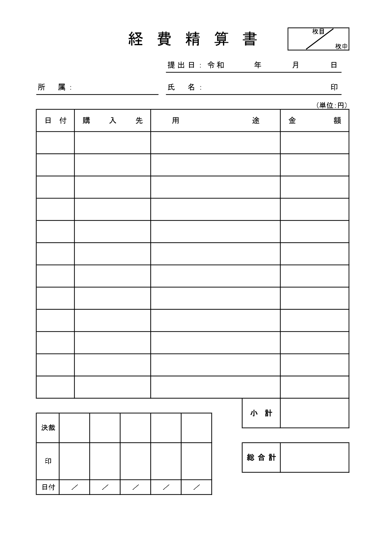 ダウンロードを頂く事で、編集や管理が簡単なエクセル、項目編集などが可能なワード、印刷し手書きで利用出来るPDFがセットの経費清算書となります。複数枚の提出を想定し枚数と総数の記載などがあり、決済者に決済を行ってもらう為の欄も設けてあります。令和や西暦で対応可能なテンプレートです。