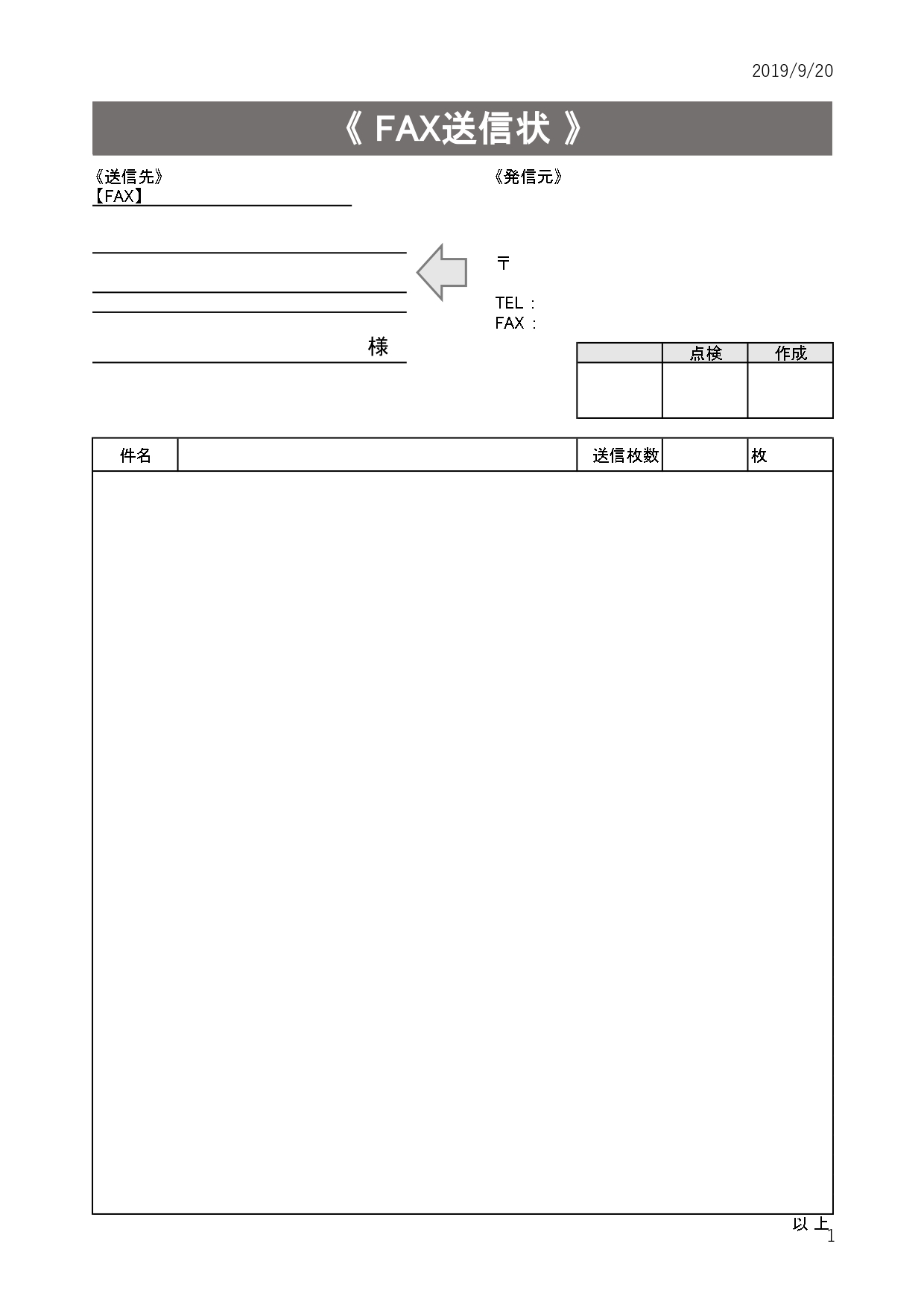 FAX送付状・シンプルで初めての相手でも安心!エクセルで簡単編集!基本項目がある余白が多めのテンプレートとなります。ダウンロード後にエクセルを編集しご利用頂けますので、項目の追加なども行えます。基本的なシンプルな項目になりますので、必要項目
