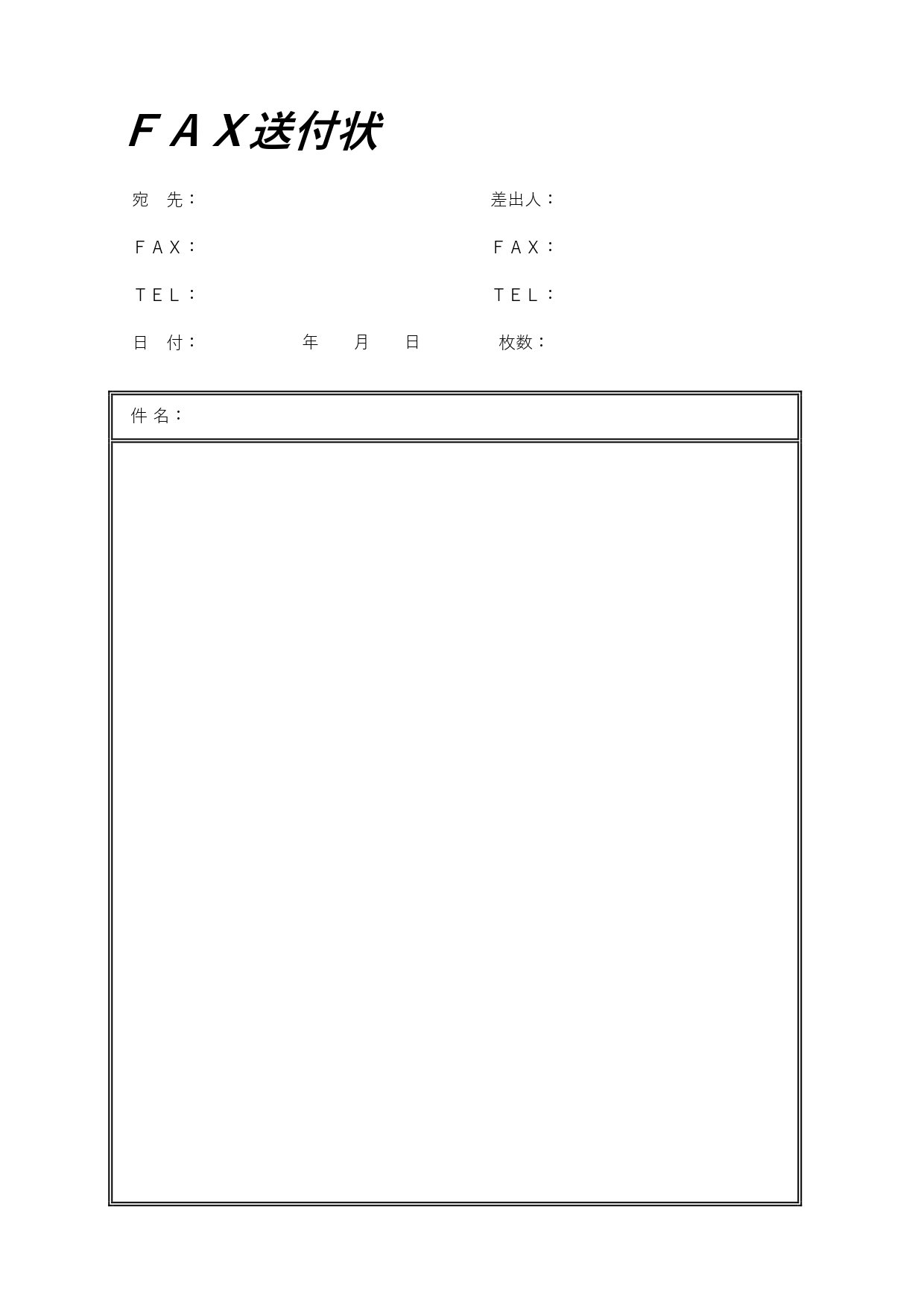 縦向きタイプ、FAX送付状のフォントのかたちが個性的です。こちらのテンプレートをPDFのフォーマットでダウンロードいただければ、プリントアウト後にすぐに手書きで作成可能。1枚を原紙として利用いただければ、都度ダウンロードいただく必要がないので手軽です。