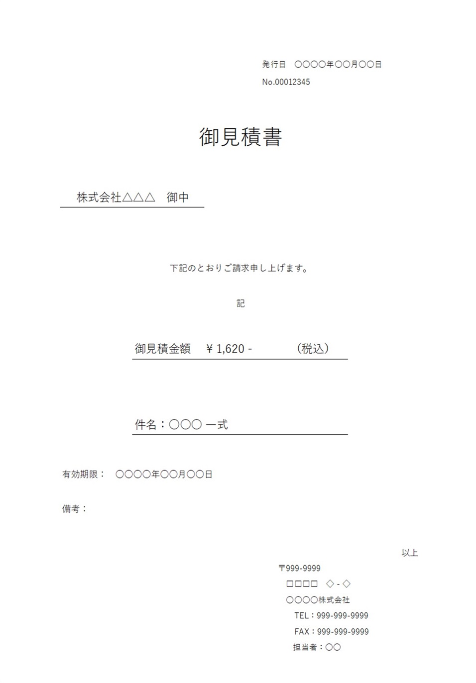 詳細などを必要とせず、金額だけを明確にした見積書を作成したい時におすすめする、無料テンプレートです。納期、支払条件、有効期限、納品場所など、特記したい内容は備考欄をご利用下さい。手早く簡単に見積書を作りたい方は是非こちらのテンプレートをご利用下さい。