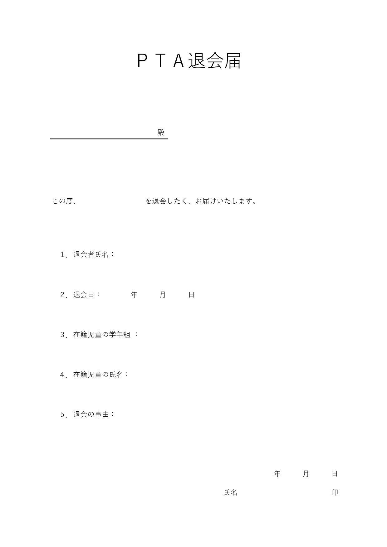 退会届(横書き・文章・枠なしシンプル)自治会や町内会・PTAに使える郵送&メール添付・FAX送付などが可能なテンプレートとなります。サンプルやエクセル・ワードはPTAと記載がありますが、町内会や自治会などに「Excel・Word」で編集し利用する事が可能です。PDFはPTAとなります。