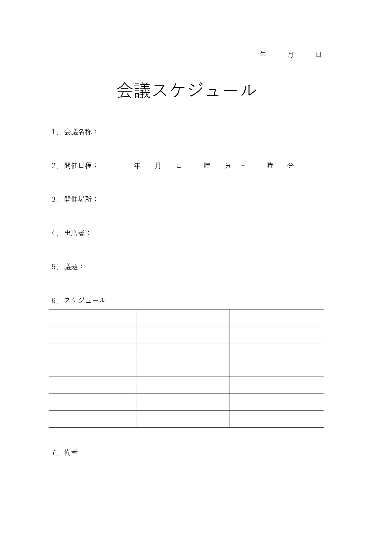 会議スケジュール資料のフォーマット☆開催日時の他、簡易スケジュールの作成が可能!