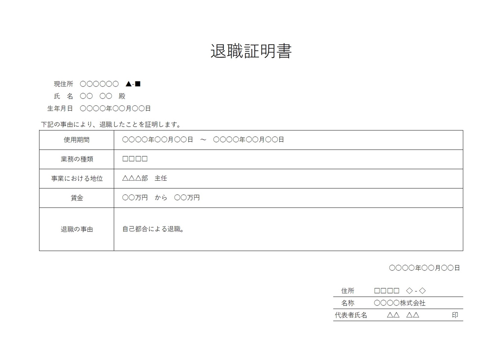 必要な場合にスムーズ発行!基本的な記載事項の退職証明書「Excel・Word・PDF」のテンプレートとなります。退職証明書の発行にはルールがございますので、発行時には注意し発行する様にしましょう。基本的な項目がございますが、用途や申請に合わ