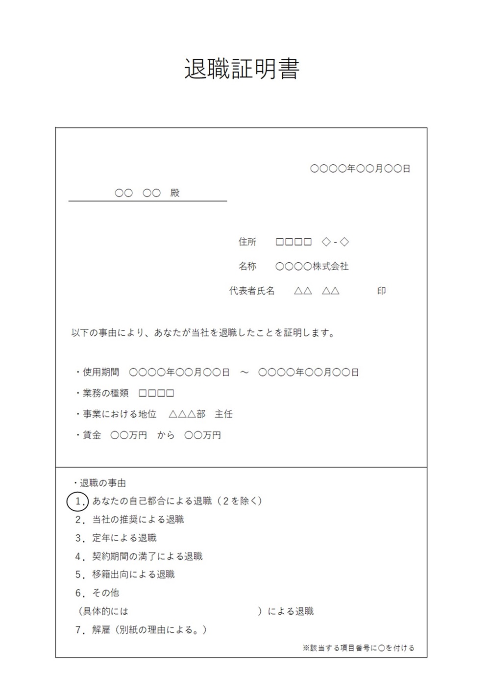 基本的な記載事項の退職証明書「Excel・Word・PDF」シンプルで作成方法&使い方が簡単なテンプレートとなります。退職証明書を発行する場合に利用出来るフォーマットとなります。記載事項に関しましては注意が必要ですので、発行時には必要な項目
